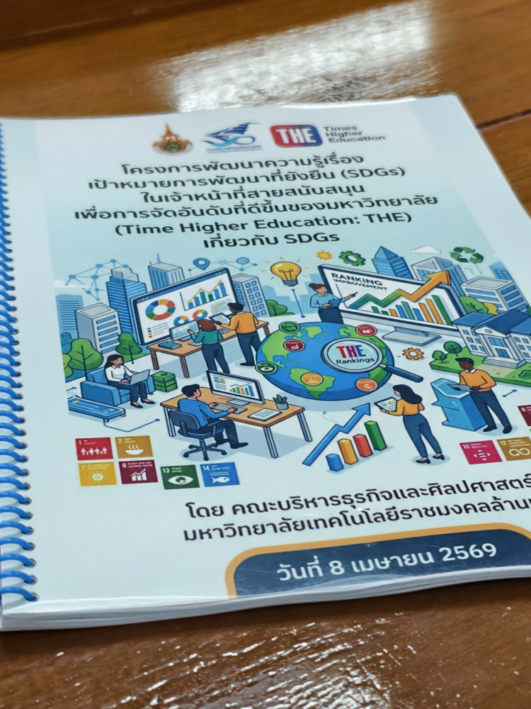 ฝ่ายวิจัยและบริการวิชาการ คณะบริหารธุรกิจและศิลปศาสตร์ มหาวิทยาลัยเทคโนโลยีราชมงคลล้านนา จัดโครงการสัมมนาเชิงปฏิบัติการเพื่อพัฒนาองค์ความรู้เรื่องเป้าหมายการพัฒนาที่ยั่งยืน (Sustainable Development Goals: SDGs) ให้แก่บุคลากรสายสนับสนุน เพื่อขับเคลื่อนยุทธศาสตร์การดำเนินงานและยกระดับการจัดอันดับมหาวิทยาลัยในระดับนานาชาติ