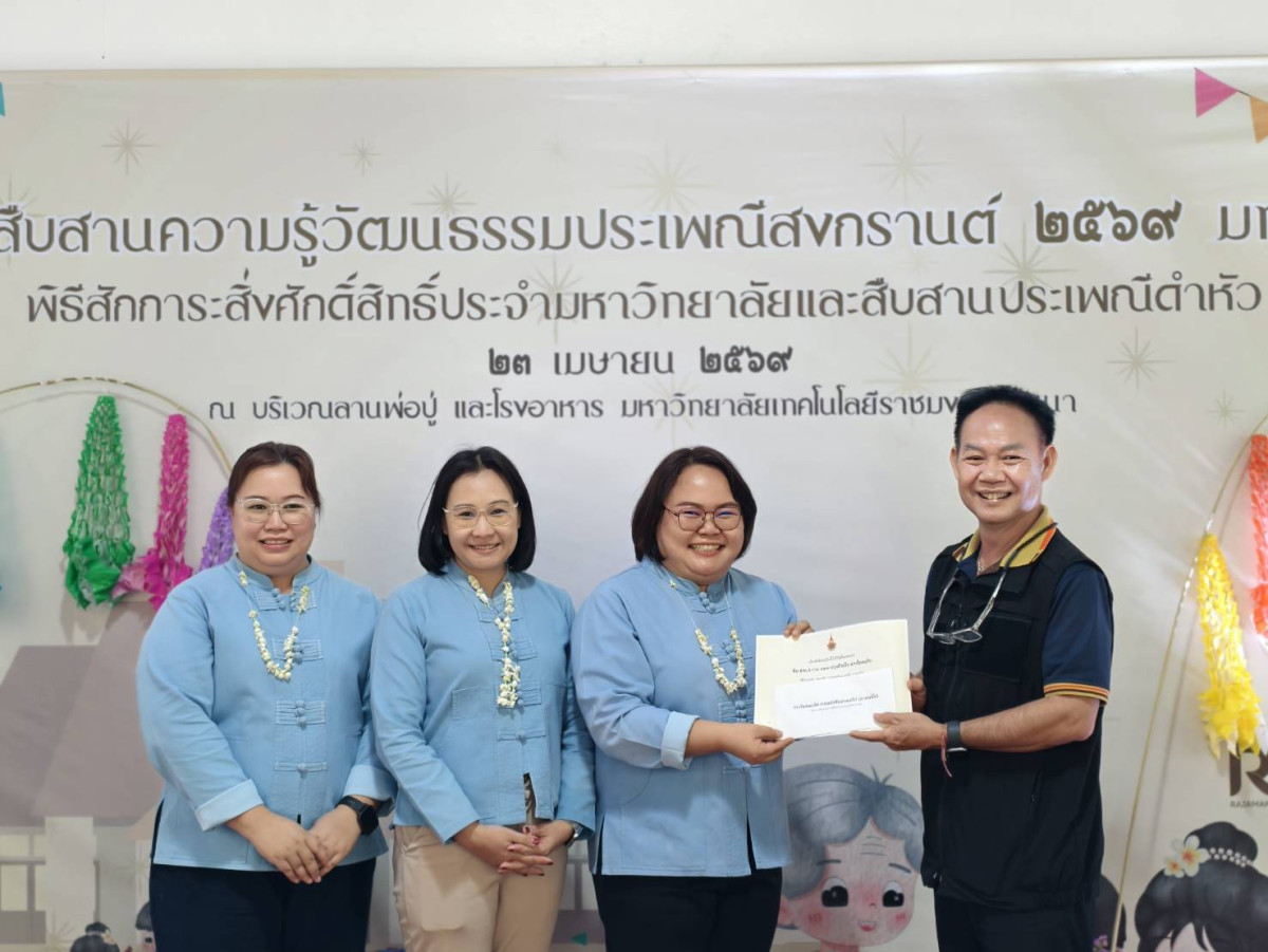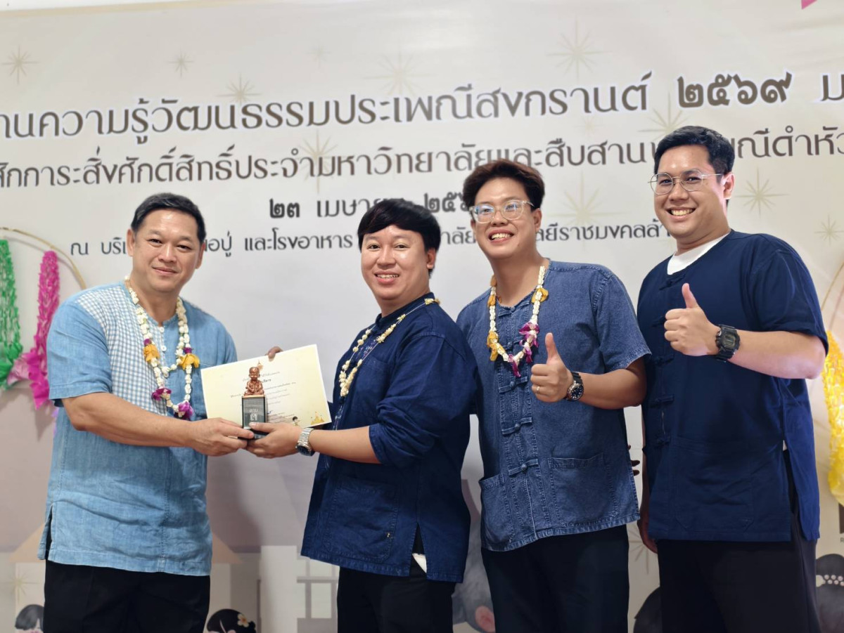 ตัวแทนคณะบริหารธุรกิจและศิลปศาสตร์ รับมอบโล่รางวัลและประกาศนียบัตรจากการแข่งขันลาบเหนือ